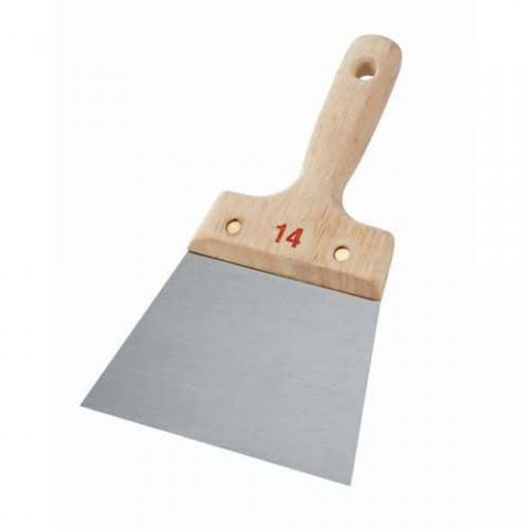 Ergonomická dřevěná rukojeť s otvorem pro zavěšení. Upevněno pomocí pozinkovaných ocelových nýtů s plochou hlavou.Kovové špachtle Roulor s dřevěnou rukojetí