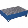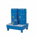 Záchytné vany určené pro skladování hořlavých kapalin H224-226 a vodu ohrožujících látek všech tříd. Varianta s integrovanými nožkami pro vysokozdvižné vozíky nebo pro umístění na chemickou paletu. Povrchová úprava práškovým lakem v modré barvě RAL 5010 nebo pozinkováním. Kapacita až 4 sudy o objemu 200 l.Ocelové záchytné vany s roštem, pro 4 sudy