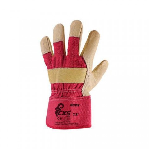 Klasické pracovní rukavice z lícové vepřovice a bavlny. Dodávány ve velikosti 11.Kožené rukavice CXS, béžové/červené