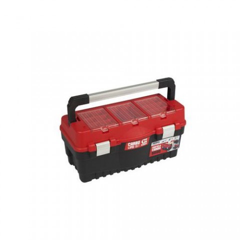 Kufry na nářadí z odolného plastu s odnímatelným víkem. Ve víku naleznete organizér na drobné součástky. Kufr můžete uzamknout visacím zámkem.Kufry na nářadí Formula Carbo