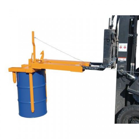 Manipulátor se sudy je vhodný pro horizontální uložení sudů do regálů. Manipulátor stačí upevnit na sud ve vertikální poloze a následně jej pomalým pojezdem vzad a snižováním lyžin otočit do horizontální polohy a umístit do regálu. Rozteč vidlic je 290 mm. Vhodný pro sudy o objemu 200 l.Manipulátor se sudy, horizontální uložení, pro 1 sud