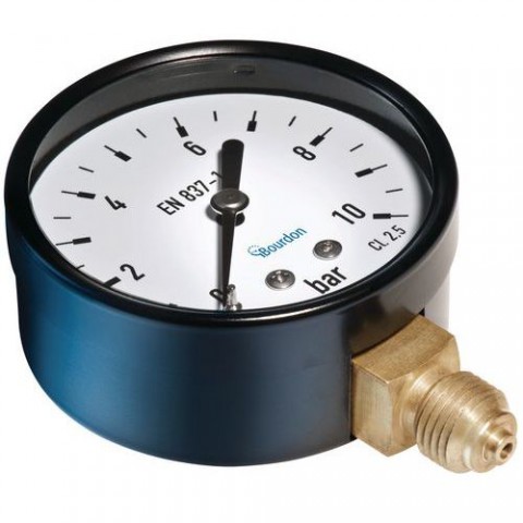 Manometr MAT vhodný pro stlačené plyny, mazací, topné nebo chladicí systémy nebo zařízení pro rozvod vody.Manometr MAT – Bourdon