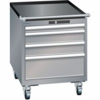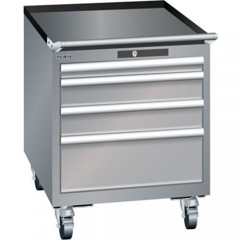 Žebrovaná protiskluzová podložka na vrchu skříně. Ochrana proti prachu, kapalinám díky uzavřenému rámu s povrchem odolným proti nárazům a oděru. Bezpečnostní pojistka zabraňující pádu a individuálnímu zamykaní zásuvek (ochrana proti převrácení). Ochrana proti korozi pomocí elektroforetického imerzního lakování a stříkání. Profesionální označování pomocí softwaru pro označování LISTA Script a výklopné úchytky pro vkládání štítků.Mobilní dílenské zásuvkové skříně LISTA, 564x725x723mm, 4, 5 nebo 6 zásuvek