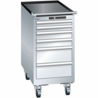 Žebrovaná protiskluzová podložka na vrchu skříně. Pohyb umožnují 4 kolečka a madlo na manipulaci. Zámek na klíč. Optimální využití díky plnému výsuvu a optimální výšce čela zásuvek. Vynikající ochrana proti prachu, kapalinám a mechanickému opotřebení díky uzavřenému rámu s povrchem odolným proti nárazům a oděru. Systém proti převrátcení, který zabraňuje pádu zásuvky, a individuální zamykání zásuvek. Ochrana proti korozi elektroforetickým imerzním lakováním a stříkáním. Optimalizované úložné prostory a organizace díky dělicímu materiálu LISTA přizpůsobenému každému použití a zásuvkám vybaveným drážkami a perforacemi. Profesionální popisování s popisovacím softwarem LISTA Script a výklopnou úchytkou pro vkládání štítků. Dokonale tichý pohyb díky saně bez příčníku.Mobilní dílenské zásuvkové skříně Lista, 6 zásuvek, 411x725x840mm