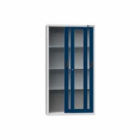 Tyto skříně jsou vhodné především do prostor, kde není možné kvůli nedostatku místa instalovat skříně s křídlovými dveřmi. U obou typů skříní jsou pozinkované police stavitelné po 25 mm. Dílenská plechová skříň disponuje posuvnými skleněnými dveřmi s bezpečnostním tvrzeným sklem na kuličkových ložiscích. Skříně jsou zamykatelné originalním POLAK design zámkem s rozpěrným mechanismem. Pozinkované police jsou stavitelné po 25 mm.Nářaďové skříně SP1-001S, 1044 x 405 x 1950 mm