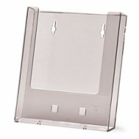 Plexi držáky na letáky, brožury, propagační materiály apod. k upevnění na stěnu. S pomocí stolního adaptéru lze zásobníky postavit na stůl. Orientované na výšku. Zásobník je standardně dodáván bez potisku.Nástěnné zásobníky na letáky JD10, 1 kapsa na výšku
