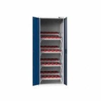 NC skříně jsou opatřeny dvojitými stěnami s perforací pro zavěšení polic, nosičů, nástrojových rámů a zásuvek. V případě vybavení skříne zásuvkami je standardně, z důvodu bezpečnosti (nebezpečí převrácení), dodávána blokace proti vysunutí více zásuvek. Korpus skříně se uzavírá křídlovými dveřmi s panty otočnými o 180°. Zamykání cylindrickým rozvorovým zámkem. Standardní výbavou je systém identifikace otvorů a popisový štítek s funkcí chytrý nábytek. Do skříní je možné zavěšovat zásuvky s půdorysem ZD (36x27).NC skříně s křídlovými dveřmi 36x27D s vybavením, var. 2