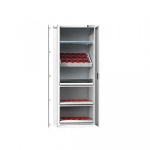 NC skříně jsou opatřeny dvojitými stěnami s perforací pro zavěšení polic, nosičů, nástrojových rámů a zásuvek. V případě vybavení skříne zásuvkami je standardně, z důvodu bezpečnosti (nebezpečí převrácení), dodávána blokace proti vysunutí více zásuvek. Korpus skříně se uzavírá křídlovými dveřmi s panty otočnými o 180°. Zamykání cylindrickým rozvorovým zámkem. Standardní výbavou je systém identifikace otvorů a popisový štítek s funkcí chytrý nábytek. Do skříní je možné zavěšovat zásuvky s půdorysem ZD (36x27).NC skříně s křídlovými dveřmi 36x27D s vybavením, var. 7