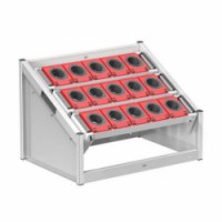 Optimálním prostředkem pro skladování nástrojů i nářadí na pracovním stole je NC stolní stojan. Horní část stojanu můžete vhodně doplnit žlabem s dělením pro drobné nástroje a nářadí. Základní konstrukce stojanu je tvořena sešroubovanými vyztuženými svařenci z ocelového plechu. Boční stěny jsou perforované, aby bylo možné zavěšení nosičů, nástrojových rámů a zásuvek hloubky 19D. Polohu rámů a nosičů můžete nastavit horizontálně nebo pod úhlem 15 či 30 stupňů.NC stolní stojany 36x27D s vybavením, varianta 10