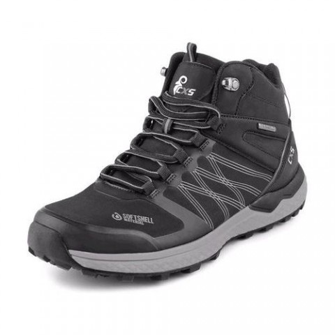 Kotníková softshellová obuv s reflexními doplňky. Materiál: svršek z materiálu softshell, TPU zesílení okopu a paty, voděodolná membrána CX-SHIELD (pouze u šedé varianty), textilní mesh podšívka, pohodlná anatomická vkládací stélka z měkké pěny a mesh tkaniny, podešev: phylon/guma. Velikost: 36-48 Reflexní doplňky: AnoObuv CXS SPORT, kotníková, černo - šedá