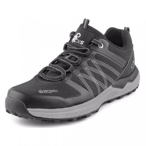 Softshellová polobotka s reflexními doplňky. Materiál: svršek z materiálu softshell, TPU zesílení okopu a paty, textilní mesh podšívka, vnitřní zesílení paty mikrovláknem, pohodlná anatomická vkládací stélka z měkké pěny a mesh tkaniny, podešev: phylon/guma. Velikost: 36-48 Ochrana: Bez vyztužené špičky Reflexní doplňky: AnoObuv CXS SPORT, polobotka, černo-šedá