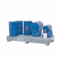 Záchytná vana pro uložení 8 sudů o objemu 200 l, ideální pro použití pod regály. Vhodné pro skladování vodě nebezpečných látek a hořlavých kapalin. Opatřená certifikátem TÜV.Ocelová záchytná vana s roštem, kapacita 660 l