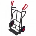 Svařovaný ocelový rudl se vzpěrami pro transport židlí. Vzpěry jsou opatřené protiskluzovým potahem, odnímatelné s regulací výšky, délka 505 mm. Rozměr lopaty 320 x 250 mm. Dvě plastová bezpečnostní madla. Pneumatiky na ocelovém ráfku nebo celopryžová kola na plastovém ráfku s přesnými kuličkovými ložisky a plastovým krytem kola.Rudly RU239 na židle, do 250 kg, 57 x 79,5 x 130,5 cm