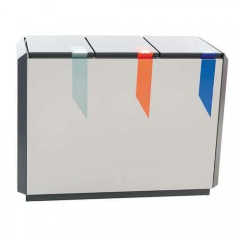 Protipožární koš na tříděný odpad z vysoce kvalitního hliníku se 3 vnitřními vložkami. Otevřením víka lze lehkou hliníkovou vnitřní vložku snadno vysypat. Vložky jsou opatřeny rukojetí pro zajištění pytle, která zároveň slouží jako hygienické madlo. Koš je dodáván s barevnými samolepkami označujícími odpadové toky (barvy a texty lze na požádání změnit). Na přání je k dispozici sada koleček, která usnadňuje přemísťování koše RecycloStar.Odpadkový koš RecycloStar bin 3_Vepabins