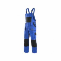 Pánské kalhoty s náprsenkou, zdvojená kolena, přední vakové kapsy, náprsní kapsa na zip, boční kapsy na metr a na mobil, pas v zadní části do gumy. Prodloužená velikost na 194 cm. Velikost: 50, 54, 58, 62, 66 Rozdělení: Pánské Normy: EN ISO 13688 Montérková kolekce: CXS LUXY Materiálové složení: kepr 100% bavlna Gramáž: 260 g/m2 Barva: modro-černéPánské prodloužené zahradníky CXS LUXY ROBIN, modro-černé