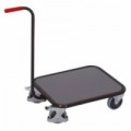 Plošinový vozík z ocelové konstrukce s ergonomicky tvarovaným madlem pro lepší manipulaci. Ložná plocha z dřevovláknité desky MDF v dekoru buk. Výška ložné plochy 18,5 cm. Pohyb zajišťují dvě pevná a dvě otočná kola s ochrannými kryty a brzdou.Plošinové vozíky s madlem, do 250 kg, 88 x 88 x 50 cm