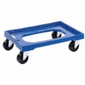 Vozíky na přepravky s maximální nosností 120 kg. Konstrukce z propracovaného systému žebrování na spodní straně zajišťuje vysokou pevnost. Snížená výška usnadňuje nakládku a vykládku materiálu. Vozíky jsou vyrobeny z ABS plastu s vysokou odolností proti poškození. Vhodné k manipulaci s přepravkami o rozměrech 60 x 40 cm a 40 x 30 cm. Pohyb zajišťují 4 otočná kola s kluznými ložisky a velmi tichým pojezdem. Vhodné pro použití v potravinářství.Plastové přepravní plošiny, do 120 kg