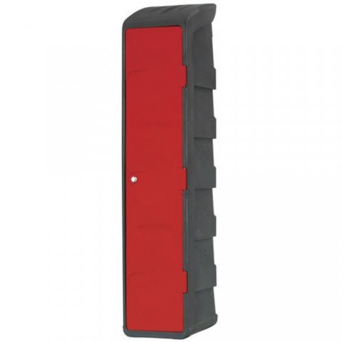 Plastová šatní skříň vyrobená z potravinářského polyetylénu hustoty 938. Pevná díky konstrukci korpusu tvořeného z jednoho plastového dílce. Odolnost vůči detergentům, kyselinám a tukům. Plně omyvatelný pro dokonalou hygienu. Vnitřní prostor obsahuje horní polici s tyčí na ramínka. Možnost dalšího rozdělení vnitřního prostoru skříně až čtyřmi standardními policemi nebo p??epážkou rozdělující vnitřní prostor vertikálně na dvě části - tuto přepážku lze uchytit až do tří bodů (nejsou součástí dodávky, viz příslušenství) Uzamykání otočným uzávěrem na visací zámek (visací zámek není součástí dodávky).Plastové šatní skříně EMP, s horní policí, 1 oddíl