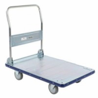 Ocelový plošinový vozík pro transport zboží a materiálu ve skladech a výrobních halách. Sklopné kovové madlo s ochrannou lištou. Plošina z pozinkované oceli s nárazovou lištou po obvodu. Pojízdnost zajišťují dvě otočná a dvě pevná gumová kolečka, která nezanechávají stopy na podlaze.Plošinový vozík se sklopným madlem Manutan Expert, do 350 kg