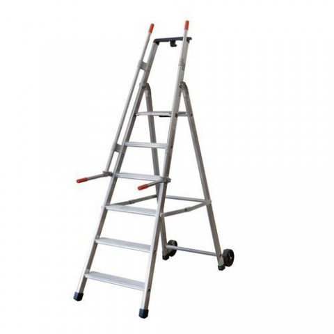 Pojízdné hliníkové schůdky Facal s držákem, 6 stupňů