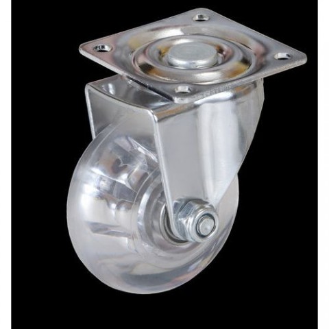 Otočná kolečka z bezbarvého polyuretanu s přírubou. Příruba z pozinkované oceli. Materiál kola odolný vůči chemickým látkám, kyselinám, alkoholům, benzínu, olejům a povětrnostním vlivům. Běhoun nezanechává stopy na podlaze. Vybavená kuličkovými ložisky.Polyuretanové transportní kolo s přírubou, průměr 50 - 75 mm, otočná, kuličková ložiska
