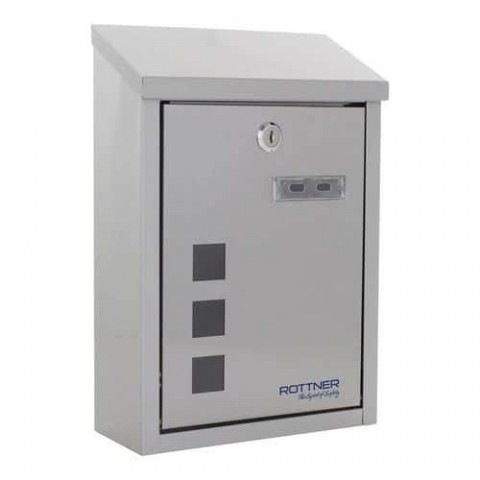 Ocelová poštovní schránka se třemi okénky, díky kterým lze jednoduše poznat, zda je schránka plná. Horní vhoz pro dopisy do velikosti A4. Štítek pro umístění jmenovky. Uzamykatelná přední dvířka. Odolnost vůči povětrnostním vlivům, schránku lze umístit do interiéru i exteriéru. Předvrtané otvry na zadní straně pro připevnění na zeď. Cylindrický zámek se 2 klíči.Poštovní schránky Rottner Casa
