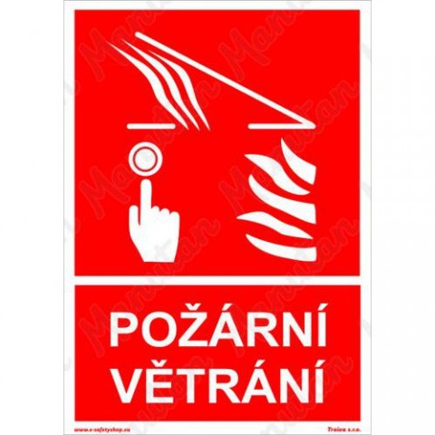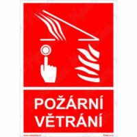 Tabulky, značky a samolepky "Požární větrání s textem" jsou tištěny na vysoce kvalitním materiálu, barvami s vysokou odolností proti otěru a UV záření. Provedení je plně v souladu s požadavky právních a technických předpisů, zejména Nařízení vlády č. 375/2017 Sb., ČSN ISO 3864-1, ČSN ISO 3864-2, ČSN ISO 3864-3, ČSN ISO 3864-4. Používá se k označení místa, kde se nachází požární větrání.Požární tabulky - Požární větrání
