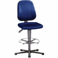 Pracovní antistatické židle s integrovanou bederní opěrkou. Plynule nastavitelná výšká sedáku v rozmězí 580 až 850 mm. Čalounění židle je prodyšné, propouští vzduch a vodní páry a zabraňuje hromadění potu.Pracovní antistatická ESD židle Bimos Unitec 9651E s kluzáky, s podnožkou, látka, modrá