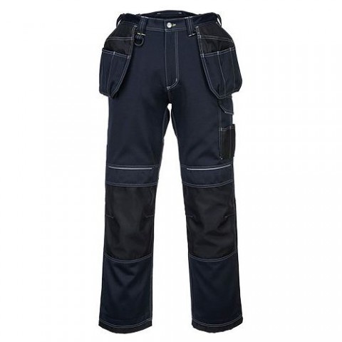 Robustní kalhoty vyrobené z 300g tkaniny Kingsmill (polyester/bavlna) s moderním vzhledem a nastavitelnou délkou nohavic. Předtvarované kolenní kapsy trojité švy klínek v rozkroku. Vyztužené kapsy pro větší odolnost. Kontrastní barevné prošití Kontrastní panely Dvojitá kapsa na metr Smyčka na kladivo Reflexní paspulky Boční kapsy Trojité švy Dvě zadní kapsy UPF 50+ Elastické v bocích Holster kapsy na nářadí Elastické gripy ve vnitřním pase Vrchem plněné kapsy na kolenní vložky Kapsa na mobil Přední D-kroužek 12 kapes Cargo kapsy na nohavicích Nastavitelná délka nohavic Vyztužené panely Odolná směsová tkanina Kolenní vložky součástí kalhot PW3Pracovní kalhoty PW3 Holster, černá/modrá