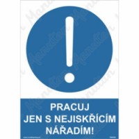 Značky, tabulky a samolepky "Pracuj jen s nejiskřícím nářadím" jsou tištěny na velmi kvalitním materiálu, barvami s vysokou odolností proti otěru a UV záření. Zaručujeme splnění požadavků technických a právních předpisů, zejména Nařízení vlády č. 375/2017 Sb., ČSN ISO 3864-1, ČSN ISO 3864-2, ČSN ISO 3864-3, ČSN ISO 3864-4.Příkazové tabulky - Pracuj jen s nejiskřícím nářadím