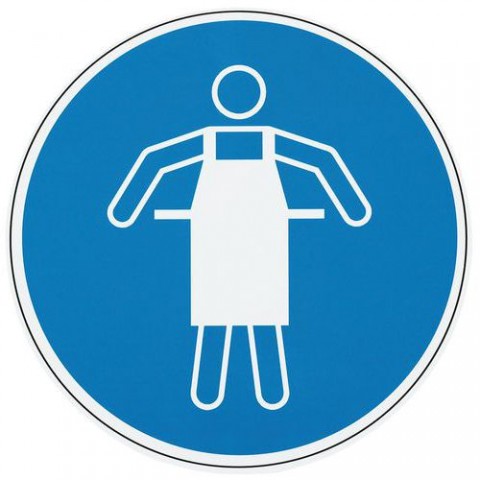 Piktogram použij ochrannou zástěru je určen pro použití v potravinářském a nápojovém sektoru a v kuchyních. Nerez odolný proti hnilobě. Polymerní plastifikace - chrání výtisk před fyzickou agresí a filtruje část UV paprsků. Venkovní i vnitřní použití.Příkazové značení Manutan Expert - Použij ochrannou zástěru, hliník, 300 mm