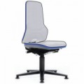 Židle je rozdělena na dvě části (1+1): konstrukce židle včetně nohou a mechanismu, a odnímatelné polstrování. Možnost nastavení hloubky sedáků až 6 centimetrů. Plynulé nastavení výšky sedáku v rozmezí 590 až 870 mm. Hliníkový kříž s práškovým lakováním.Pracovní antistatické ESD židle Bimos Neon s kluzáky,s podnožkou
