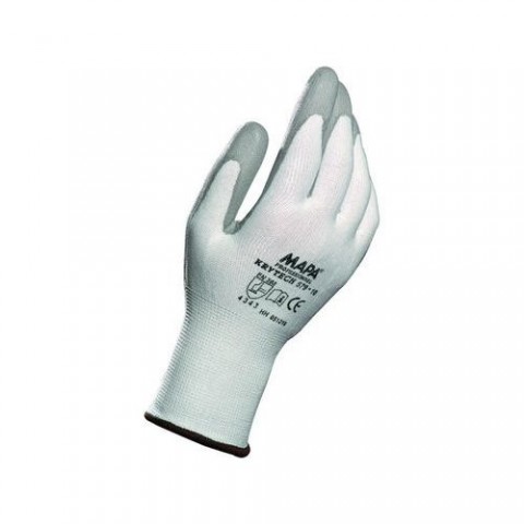 Protipořezové rukavice s dlaněmi a prsty povrstvenými polyuretanem. Odolnost proti řezu 3. Délka rukavice: 22 - 27 cm. Doporučené použití: montáž tenkých plechů, manipulace s neopracovanými díly nebo plechy, manipulace s lepenkou a papírem. Odv Velikost: 7, 8, 9, 10 Piktogramy: 1 / 4343, 9, 10 Normy: EN 388, EN 420 Materiálové složení: bezešvý úplet z HDPE vlákna Délka: 22-27 cmProtipořezové rukavice MAPA KRYTECH, bílé