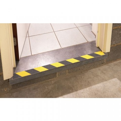 Podlahová značkovací páska, díky které můžete snadno zviditelnit vchod/východ, upozornit na přítomnost schodů nebo ohraničit místnost dle potřeby. Snadná a rychlá instalace díky samolepicí vrstvě. Výborná viditelnost díky kombinaci barev černé a žluté. Šířka pásky je 50 mm, délka 5 m.Protiskluzová podlahová páska Esma, šířka 50 mm