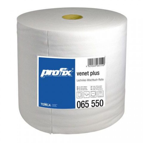 Měkká a savá, leštící utěrka TEMCA mix vláken viskóza/polyester. Typická dírkovaná struktura, bez silikonů, odolná proti rozpouštědlům, opakovaně použitelná, odolná proti roztržení, určená pro suché i mokré účely. ISEGA - certifikát, bezpečná pro styk s potravinami. Tato speciální utěrka je obzvláště vhodná do prostředí lakoven (před a péče po lakování). Vhodná také jako čistící a dezinfekční utěrka pro hladké a citlivé povrchy v lakovnách, automobilový - nábytkářský-strojírenský průmysl, technologie lití, sklářský průmysl a dílny. Univerzální utěrka pro závodní jídelny a kantýny, nemocnice, domy s pečovatelskou službou.Průmyslová role velká TEMCA Profix venet plus 500 bílá