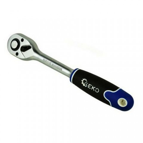 Ráčna o velikosti 1/2“ s 45 zuby prezentuje nejhojněji využívaný typ nářadí v dílně a garáži. S rohatkovým mechanismem. Konstrukce z chromované vanadové legované oceli zajišťuje dlouhou životnost a vysokou životnost. Malý ráčnový zdvih usnadňuje práci v těžko dostupných místech. Ergonomická rukojeť z dvoukomponentního protiskluzového plastu zajišťuje pohodlí a bezpečnost při práci. Spínač směru doleva / doprava. Tlačítko uvolnění uzávěru víčka.Ráčna 1/2" GEKO