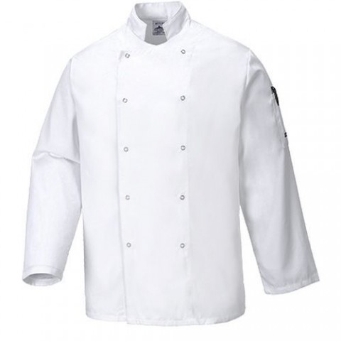 Určeno pro profesionályrondon Suffolk je ideální pro moderní kuchyně. Volný pohyb a dobrý pocit po celý den Přední kruhový druk Kapsa na rukávu 1 kapsa Tkanina Pre-Shrunk Unisex vzhled Odolná tkaninaRondon Suffolk Chefs, bílá
