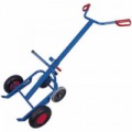 Vozík se svařovanou ocelovou konstrukcí pro přepravu 200l sudů. 2 plastové rukojeti s ochranou. Středová podpěra sudu pro vyšší stabilitu. Pneumatiky na ocelovém ráfku nebo celopryžová kola na speciálním plastovém ráfku s přesnými kuličkovými ložisky a plastovým krytem kola.Rudly RU202 na sudy, do 250 kg