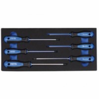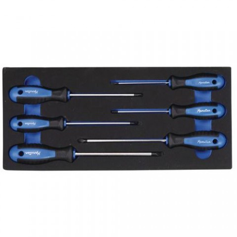 Set šroubováků v pěnovém modulu pro profesionální skladování nářad??. Zakulacené rukojetí zajišťují pohodlí při použití. Vyrobené z chrom-vanadové oceli.Sada šroubováků Manutan Expert, 6 ks