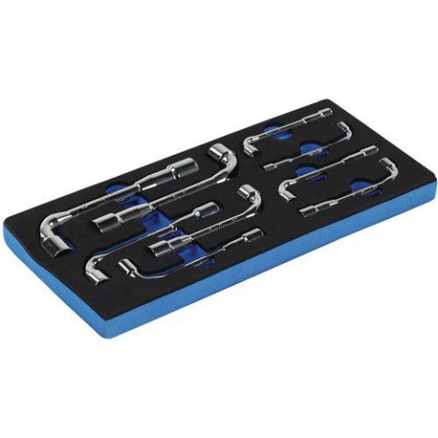 Sada zahnutých nástrčných klíčů Manutan Expert v pěnovém modulu, 9 ks