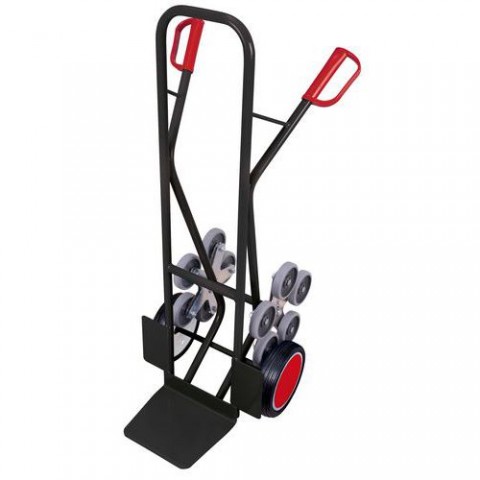 Schodišťový rudl s pětiramennými hvězdicovými koly s šedými nešpinivími pneumatikami z termoplastické pryže. Ocelová konstrukce s lopatou o rozměru 300 x 250 mm. Dvě plastová bezpečnostní madla. Pneumatiky na ocelovém ráfku nebo celopryžová kola na plastovém ráfku s přesnými kuličkovými ložisky a plastovým krytem kola.Schodišťové rudly RU251, do 200 kg
