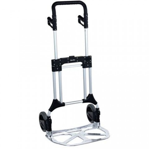 Hliníkový rudl je vybaven velkou sklopnou lopatou a zasouvacím madlem. Lze rychle a jednoduše složit.Skládací hliníkový rudl Manutan Expert RU47 s plnými koly a upevňovacím systémem, do 200 kg