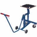 Svařovaný ocelový vozík pro přepravu stolů. Tažná/tlačná tyč s rukojeťmi, včetně páky pro aretaci zvedacího pohybu. Ložná plocha s žebrovaným pryžovým potahem a 4 bílými pryžovými nožkami. Šedá kola z termoplastické pryže nezanechávající stopy na plastovém ráfku s přesnými kuličkovými ložisky. Dvě pevná opěrná kola a dvě otočná.Vozíky na stoly, 135 x 49 x 81,5 cm