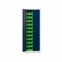 Skříně série UK s křídlovými dveřmi s úhlem otevření více než 90° jsou lehčí formou dílenských skříní. Používají se především pro ukládání méně rozměrných a lehčích materiálů nebo jako úložiště plastových boxů pro drobnější materiál. Skříně jsou zamykatelné originalním POLAK design zámkem dvoubodového zamykacího systému s tichým chodem. Police jsou stavitelné. Dílenská plechová skříň s křídlovými dveřmi s úhlem otevření více než 90° je lehčí formou dílenských skříní a používají se především pro ukládání méně rozměrných a lehčích materiálů nebo jako uložiště plastových boxů pro drobnější materiál. Stabilní konstrukce z ocelových plechů.Skříňky s boxy UK2-B11, 700 x 400 x 1950 mm