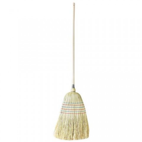 Koště na zametání se slaměnými štětinami a dřevěnou tyčí.Slaměný smeták Manutan Expert s tyčí