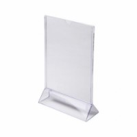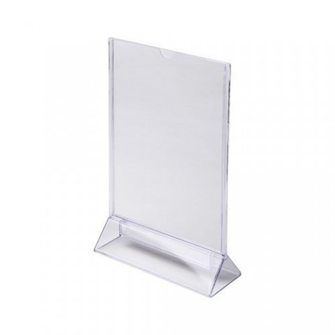 Pultové prezentační stojánky tvaru Y z plastu. Vhodné jako stojánek na menu do restaurací. Orientované na výšku. Dvoustranný pohled. Stojánek je standardně dodáván bez potisku.Stojánky na letáky JD5, typ Y na vý??ku