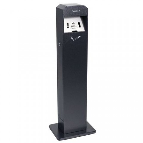 Kovový venkovní stojanový popelník vyrobený z oceli a odolný proti povětrnostním vlivům. Povrchová úprava práškovým lakem s odolností proti korozi a UV záření. Vrchní část popelníku z matné nerez oceli. Vyprázdnění nádoby popelníku bočními uzamykatelnými dvířky.Stojanový venkovní popelník Manutan Expert Tower