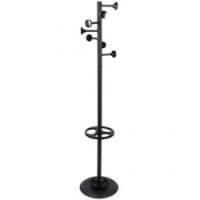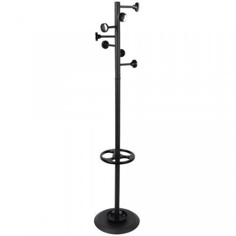 Stojací věšák se sedmi háčky pro odkládání šatů. Háčky jsou poskládané designově ve spirále, koncovky háčků v chromovaném provedení. Integrovaný stojan na deštníky. Stabilitu zajišťuje kruhová základna.Stojanový věšák Manutan Expert Moon, 7 háčků
