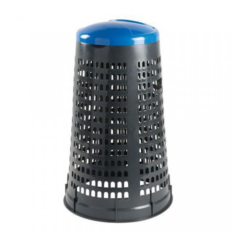 Plastové stojany s barevnými víky na odpadkové pytle. Určené pro odpadkové pytle o objemu 110 l, upevnění pytle připevňovacím kruhem. Děrovaná konstrukce tvořená tak, aby nedocházelo k nežádoucímu odfouknutí odpadkového pytle. Vyrobené ze 100% recyklovatelného HDPE, stojany lze na sebe stohovat.Stojany Element na odpadkové pytle s víkem