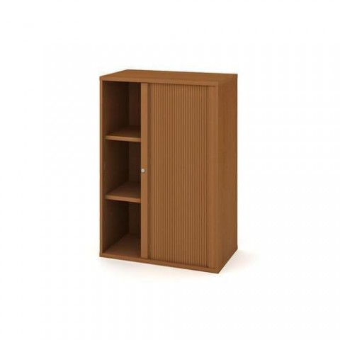 Střední skříň ve třech barevných variantách se dvěma výškově stavitelnými policemi. Uzamykatelná roleta s otevíráním doprava. Osazení ABS hranami. dezén: buk, ořech, třešeň rozměry v x š x h: 115,2 x 80 x 40 cm materiál: laminovaná dřevotříska počet polic: 2 nosnost police: 80 kg zámek: ano provedení: s roletou - pravé provedení ABS hrany (2 mm čelní strana, 1 mm ostatní hrany), desky tloušťky 18 mm (boky), 8 mm (zadní strana) a 25 mm (police, horní a spodní deska), dodáváno v demontovaném stavu (spojovací materiál součástí balení)Střední široké skříně Strong, 115,2 x 80 x 40 cm, s roletou - pravé provedení